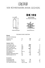 đ DatenblĂ€tter zur Röhre: DK192
