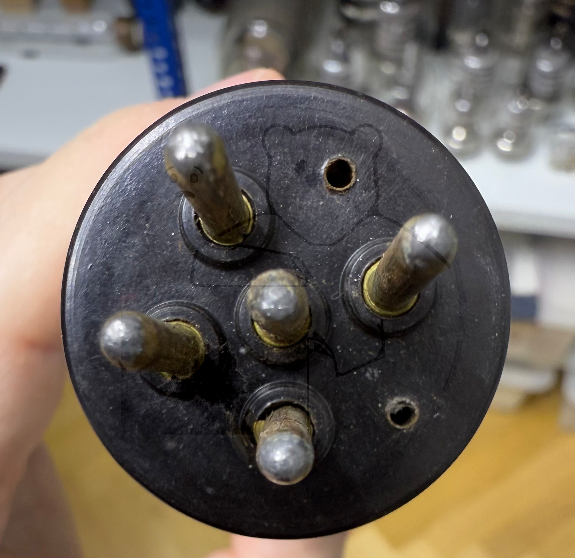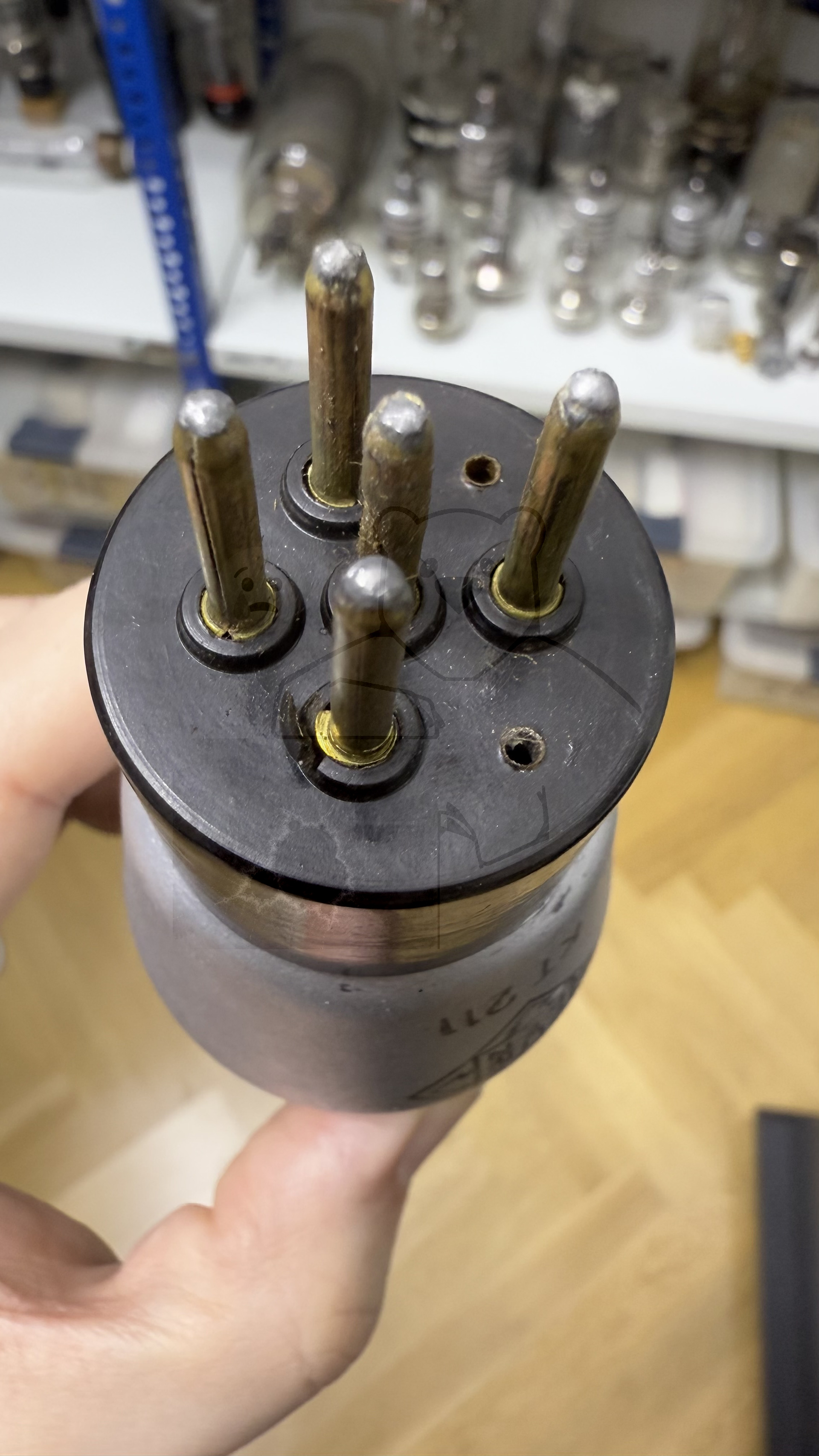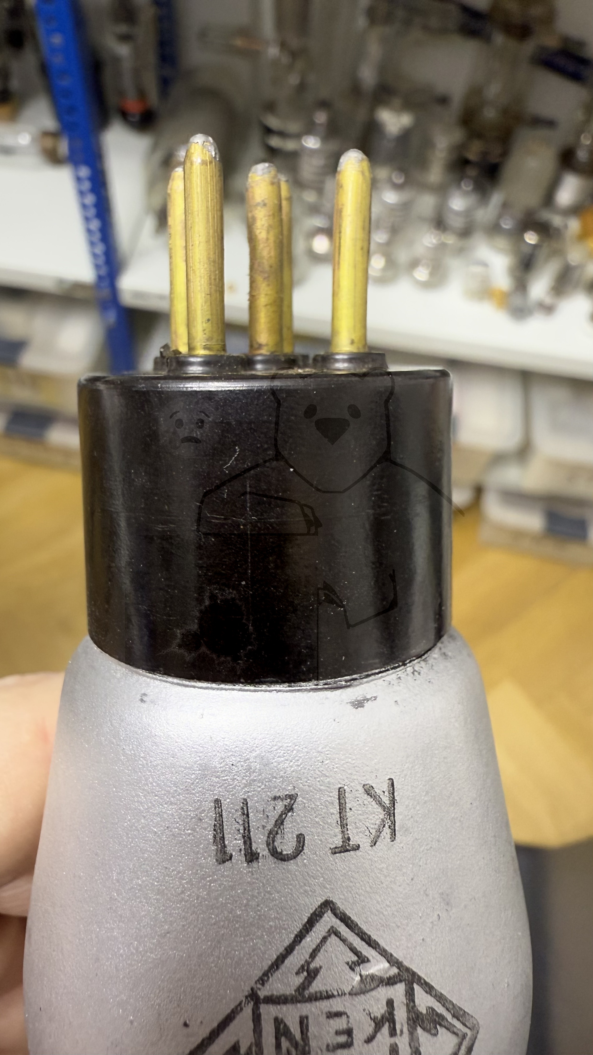 Für die Variante mit Europasockel existieren leider noch gar keine Daten bzw. Messwerte. Auffällig ist, das diese Variante als Pentode aufgeführt ist. Das dritte Gitter ist direkt mit der Kathode verbunden. Dieses dritte Gitter fehlt der Stahlröhrenvariante. Eventuell wurde diese Variante der KT211 nicht von Telefunken produziert, sondern von AEG. Auf dem Sockel fehlt der Telefunken-Datumscode sowie hat die Röhre von der äusseren Erscheinung sehr starke Ähnlichkeiten mit den AEG-Weitverkehrsröhren dieser Zeit. Bild 1.jpg)